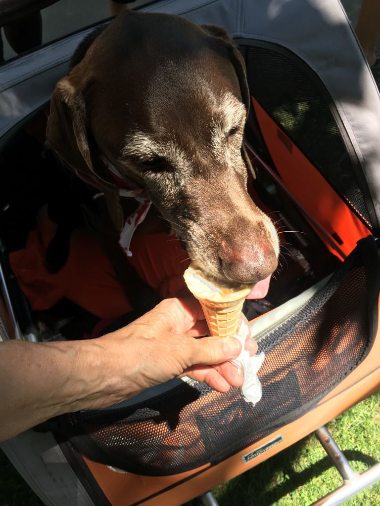 On this particular day, I am in the cart riding along behind Julie as she pedals her bike along the streets of London, Ontario. Gosh, she does like to bike and I am happy for it because I get to sit in comfort while she pants, and wheezes, and sweats!