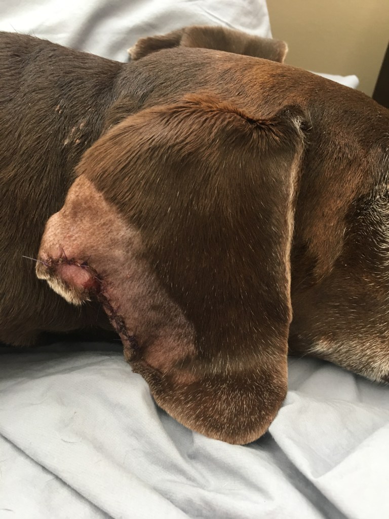 Julie came to get me and was all smiles and hugs. Apparently most of my ear was saved!