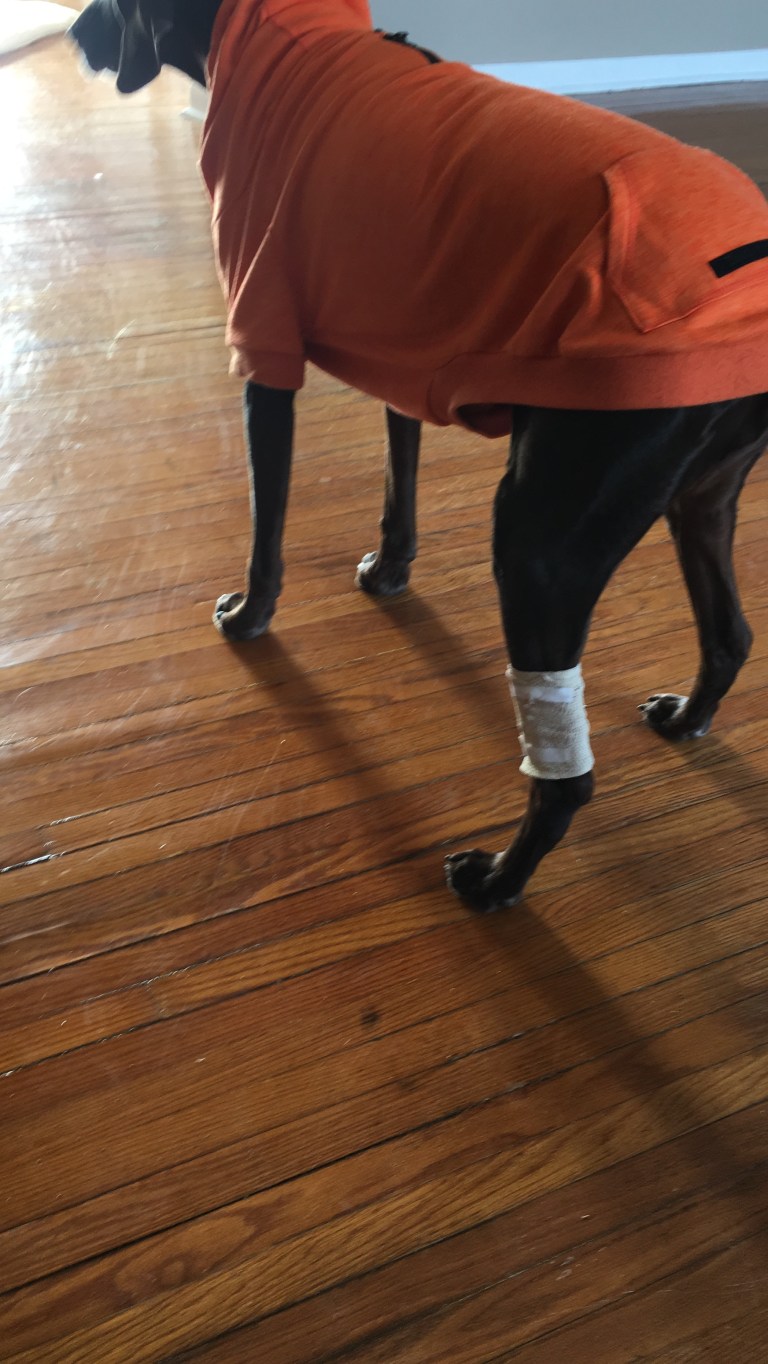 Oh, you are asking about the stretchy-clingy-thingy wrapping my leg?