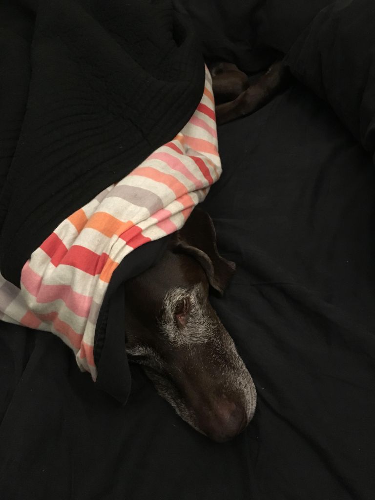 Therefore, I insisted on staying wrapped up like a bed burrito this morning. Julie coaxed and worked very hard to lay out the logical reasons for getting up.