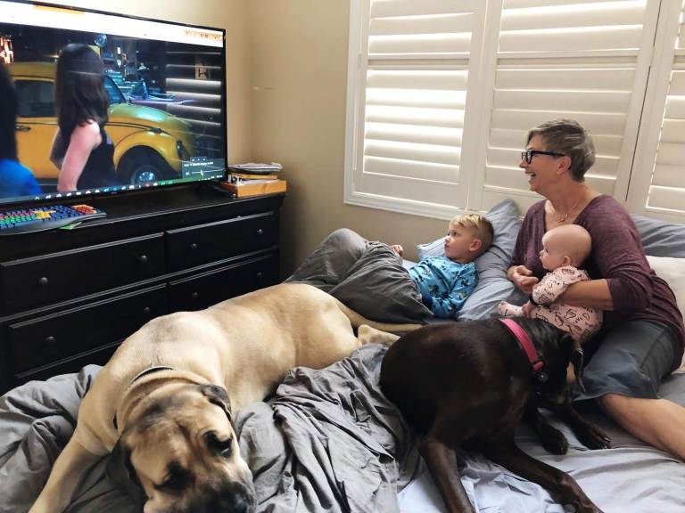 This is a typical Saturday and Sunday morning event here where we all pile into the bed and watch Transformers or Rise of the Guardians or Guardians of the Galaxy.