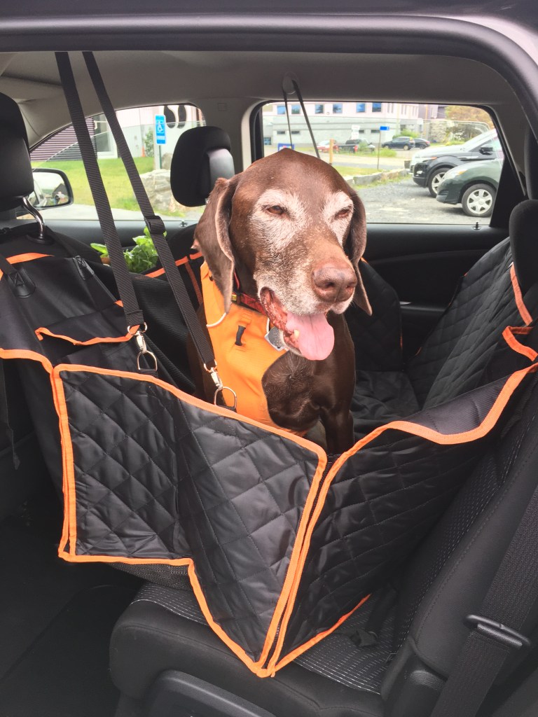 It is trimmed with the perfect colour to match my RuffWear halter and collar. Oh . . . I do like to be styling! And with this hammocky-thingy, I can make a mess without worrying about where my muddy paws are plopped or if I sneeze and all the gooey bits from my nose fly out to land it can land anywhere. It’s all my space to make as gucky as I want!