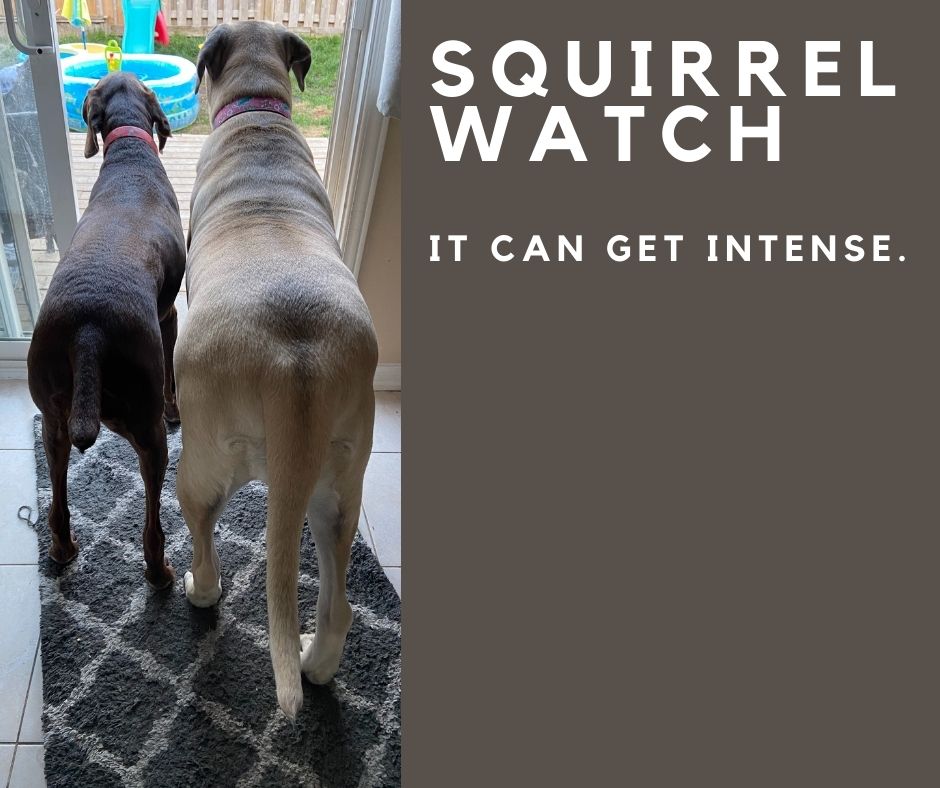 I’ve not many options for Squirrel TV these days. But when one shows up hopping along the tops of the yard fence, Addie and I are ready.
