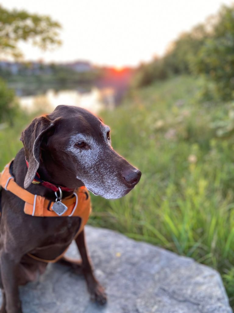 Julie takes me for a walk every morning and this is one of the first where we catch a moment to watch that blazing ball lift itself from the crease above the trees.