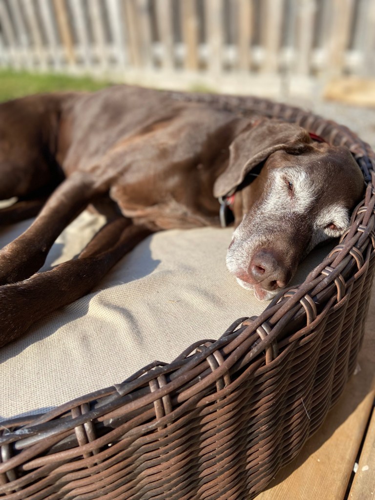 I am dreaming of catching those squirrels who are leaping along the fence tops and of the scrambled eggs Julie puts on my kibble some mornings.