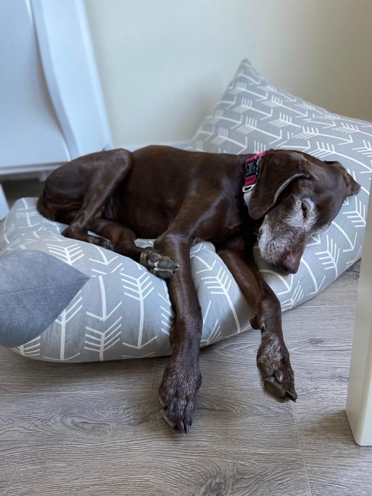 I came home, sniffed every corner and chair, and jumped on every bed just to make sure everything is just like I left it. After a tour of the yard and dinner, I sought out the bean bag for a nap. Ah.