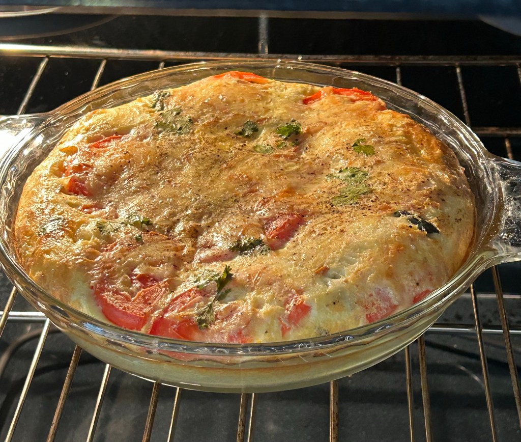 Double yuck, she put those spikey green pointy things under the cheese and mixed up in the eggs. I will have to pick them out.