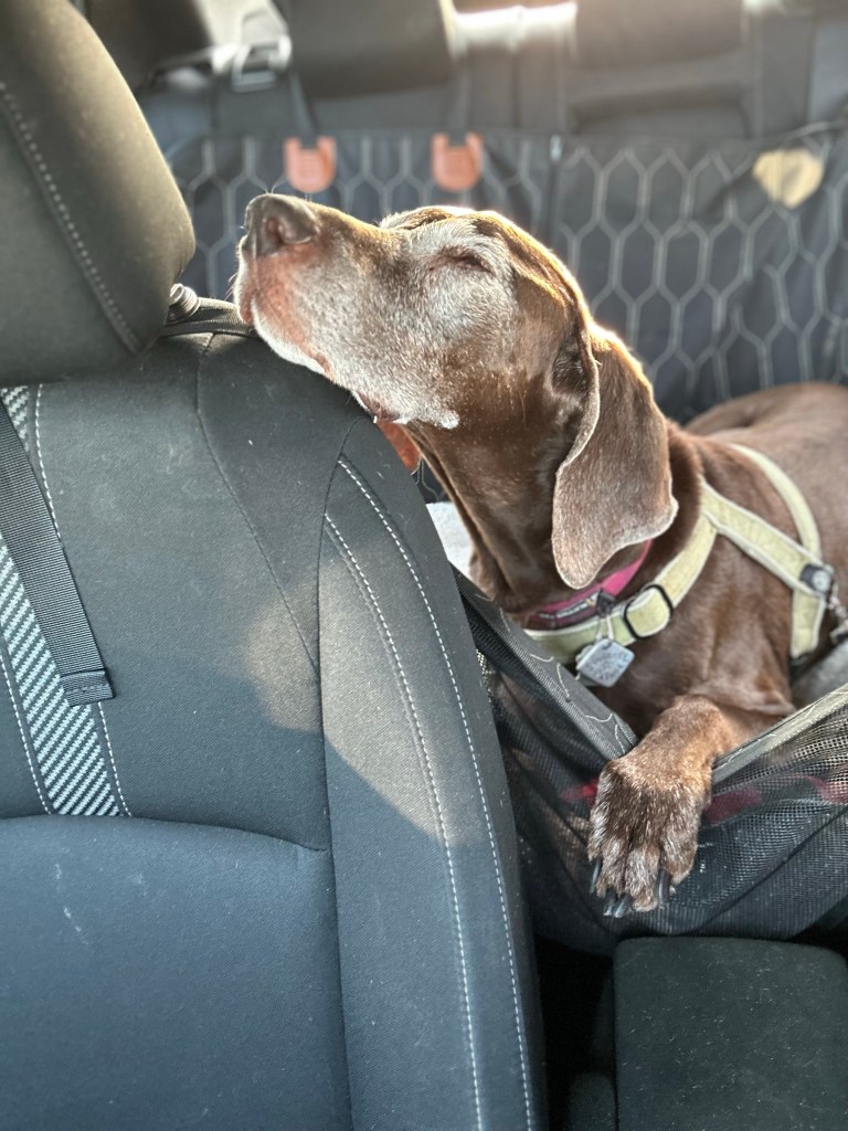 I have the most comfortable hammock in the back seat of the car and it is at a perfect height for me to rest my nose on the back of the front seat.